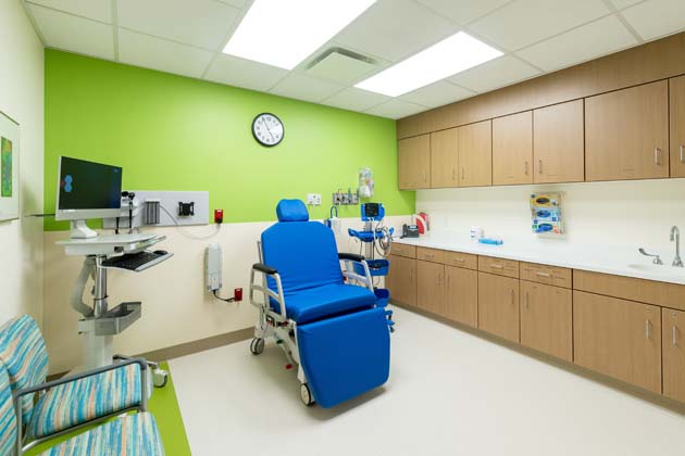 The first portion of this multi-phased project included renovations to the Outpatient Burn Center. The renovated outpatient unit provides space for five exam rooms as well as a procedure room. Associated support spaces include clean supply, a medicine room, and offices for physicians and clinical staff. The second phase of the project encompassed updates to several clinical and common areas within the Burn Institute, including three procedure rooms and a physical therapy room.