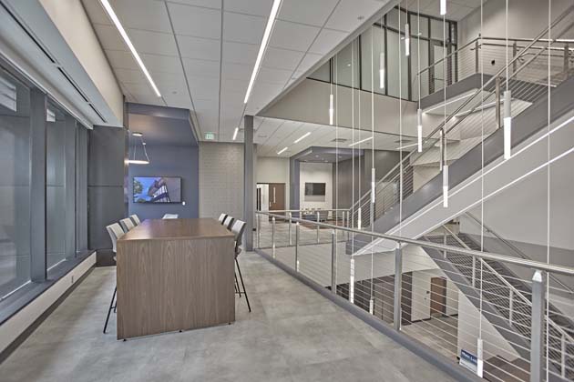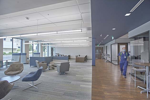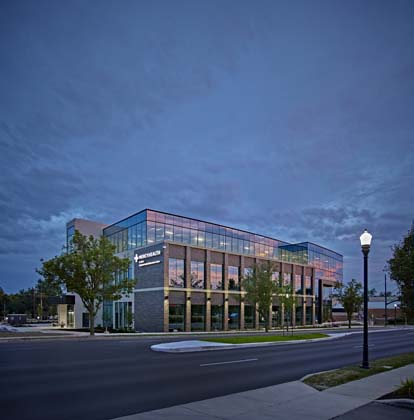 St. Rita’s GME sits on the corner of two main streets downtown, with large windows to let in natural light and create a bright, airy environment inside that is reminiscent of the outdoors. The space includes flex conference rooms, an auditorium, a library, a computer lab, study labs, simulation suites, open offices, and a third level that serves as future growth space, for the everchanging nature of medicine.