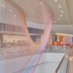 Kevin Barry Art Advisory unveils While Sifting through a Me Dream, from Los Angeles-based integrated design and fabrication firm Ball-Nogues Studio. The suspended ceiling sculpture is crafted from more than 25,000 feet of aluminum bead chain and can bring a sense of movement and calm to high-traffic public spaces.