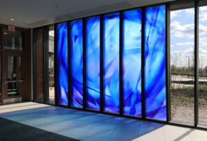 Guy Kemper unveils Fired Vitreous Enamel Art Glass, hand-painted on clear safety glass that allows for larger, nearly indestructible panels. The line can also be wall-mounted with standoff hardware and is applicable for lobby art features, meditation spaces, and architectural screening.
